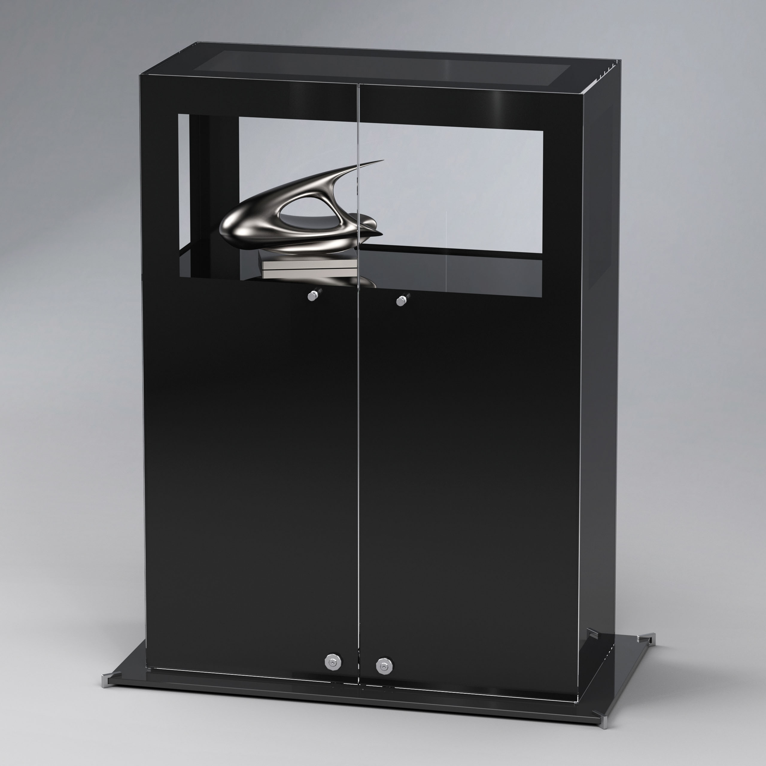 | Merkmale Vitrine: | Farbe schwarz, abschliessbar, mit Drehtüren, mit Sockel, stehend |